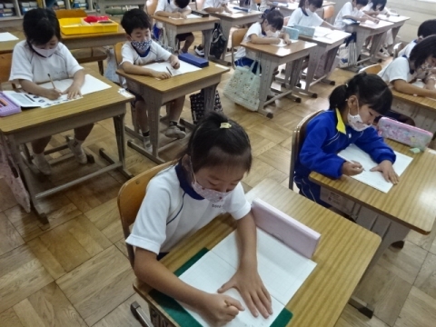 月曜日のお別れ式に向けて、1年から4年生が呼びかけや式の流
