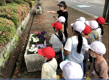 今回はみどりコースを中心に、市役所 リージョンプラザ 図書館お城西公園 一之坪公園等を歩きながら場所を確認したり、気づいたことをワークシートに書き込んだりしました。どんなことを発見したかな?