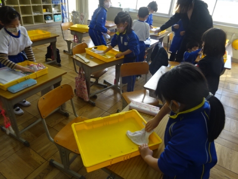 先週にくらべるときょうは少し冷たい日になりましたが、みんながんばって大掃除をしました。