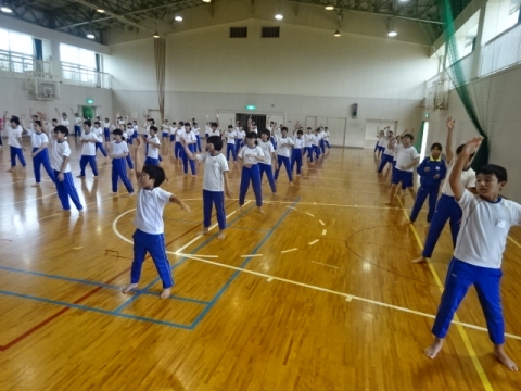 今日は、1年生から4年生までの子どもたちが6年生とお別れ式を行いました。