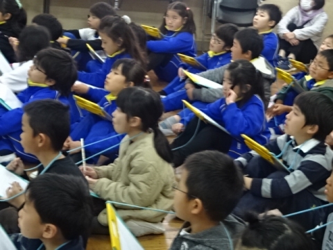 卒業式には出席しない1年生から4年生が、6年生とのお別れ式を