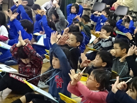 しっかり呼びかけをする1年から4年生の姿が、とっても大きく