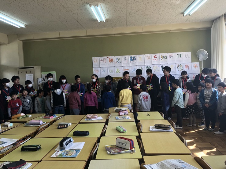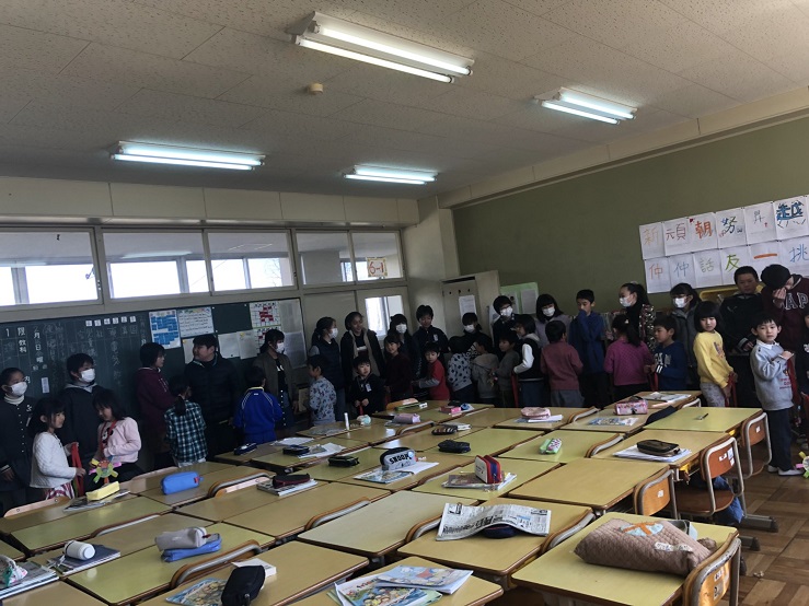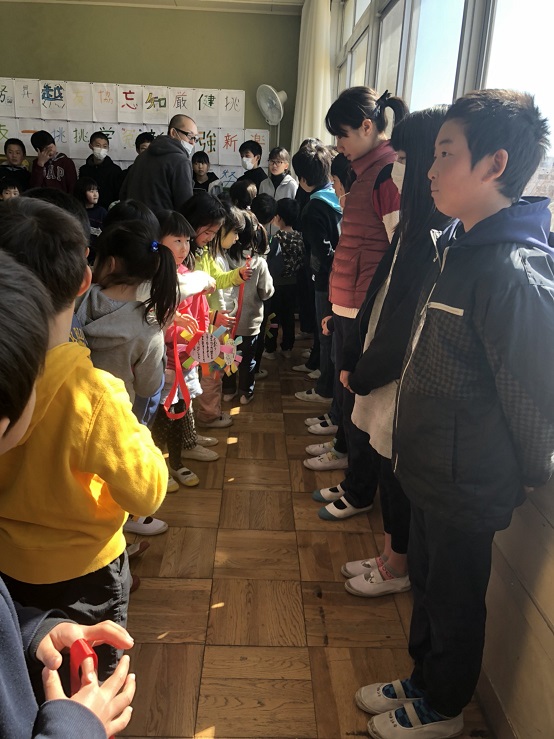 卒業式には出席しない1年生から4年生が、6年生とのお別れ式を