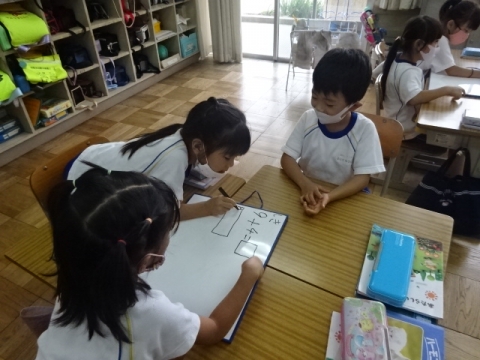 課題が早く済んだ子から、タブレットでプログラミング体験。
