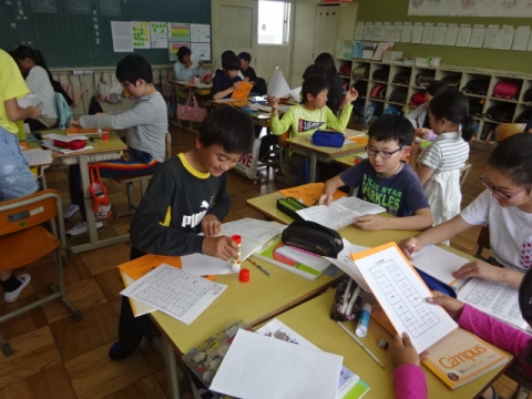 月曜日のお別れ式に向けて、1年から4年生が呼びかけや式の流