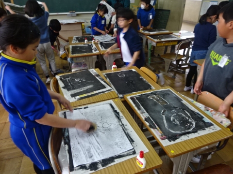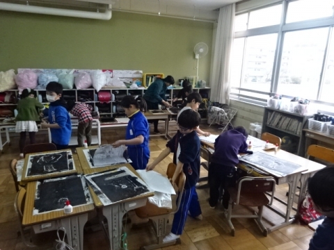 3年生 図工の作品バックを写真にとって先生におくり、互いにタブレット上で鑑賞できるようにしました。