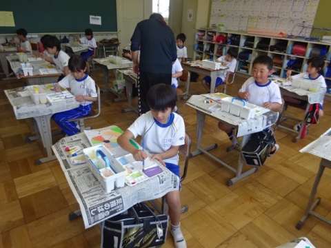 3年生 図工の作品バックを写真にとって先生におくり、互いにタブレット上で鑑賞できるようにしました。