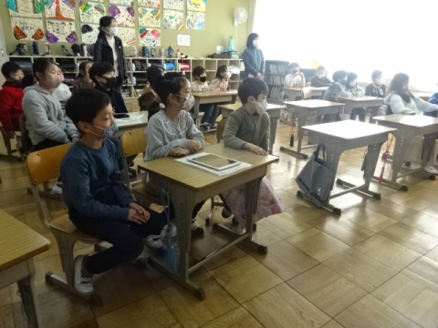 卒業式には出席しない1年生から4年生が、6年生とのお別れ式を