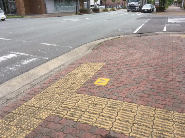 このマークより車道の方へは行かないように信号待ちしてくださいね。