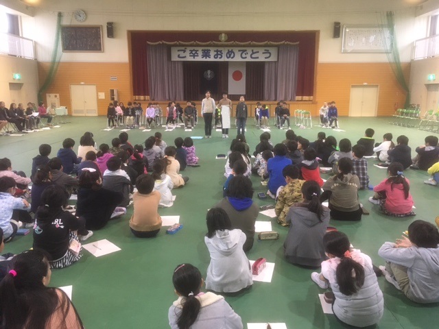 卒業式には出席しない1年生から4年生が、6年生とのお別れ式を