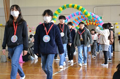 6年生は、一年生からプレゼントしてもらったメダルを一日、帰る