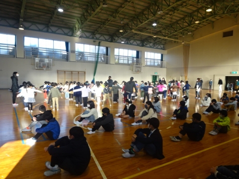 今日は、1年生から4年生までの子どもたちが6年生とお別れ式を行いました。