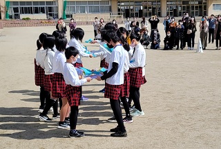 卒業式には出席しない1年生から4年生が、6年生とのお別れ式を