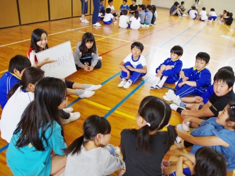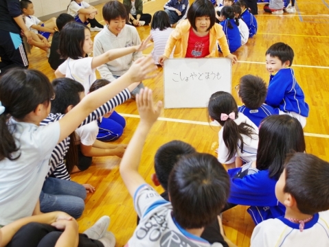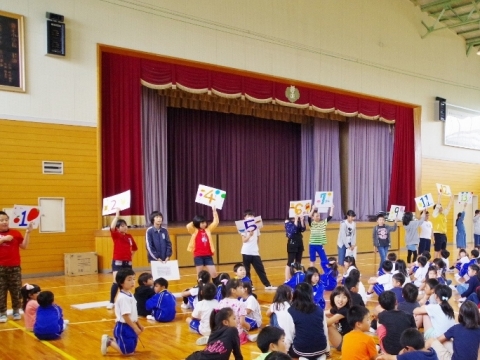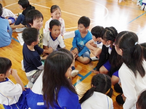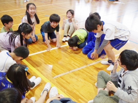 児童会と6年生が企画運営し、たてわり班で楽しくゲームなどをしました。はじめはぎこちない表情でしたが、早口言葉・震源地はだれだ・落ちたおちた・ハンカチ落としなどするうちにみんなが楽しいいきいきした表情になりました。