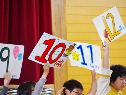 しっかり呼びかけをする1年から4年生の姿が、とっても大きく