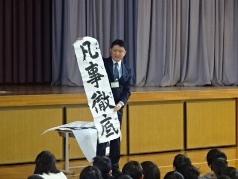 そしてふだんのあたりまえのことをがんばるという養正小のキャッチフレーズの「凡事徹底」も これも地域の方に書いていただきました。