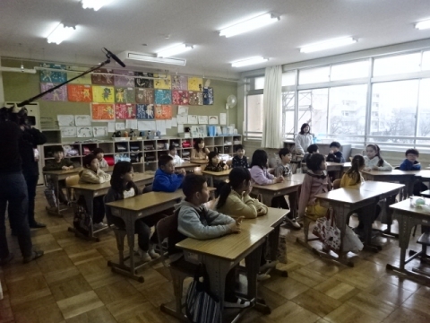 3年生は教室でも取材 緊張しました。
