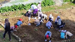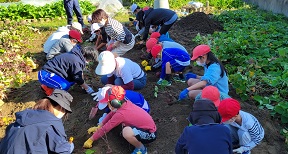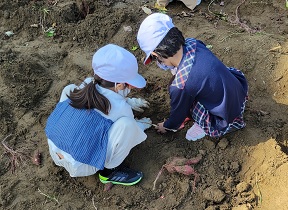 2年生の子どもたちとようせいきょうしつの子どもたちがイモほりをしました。