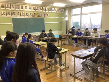 毎月1回、児童会室にて児童会主催の児童議会が行われています。昨日行われた児童議会では、5年生から学校への持ち物について提案があり、それを児童議会で話し合うことになりました。この日は、来年度から児童会選挙に参加する3年生が見学に来ていて、熱心に話し合っている先輩たちの様子を見ていました。日頃から子どもたち自身が主体となって行動する大切さを3年生にも学んでほしいと思います。