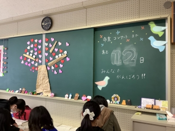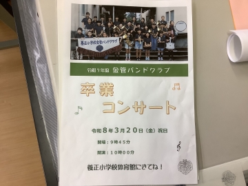 卒業式翌日の3月20日(金)に金管バンドクラブの卒業コンサートが開催されます。この日に向けて、金管バンドクラブは毎朝、そして火・木曜日の放課後と一生懸命に練習し、当日は全10曲を披露します。この1年間、バンド仲間と楽しく、そして真剣に練習してきた成果を思う存分発表してほしいと思います。練習日には演奏している様子を津市役所文化振興課の職員さんが見学に来てくれていました。小さな子どもたちが楽しそうに演奏している姿、そして演奏の素晴らしさにとても感心してみえました。