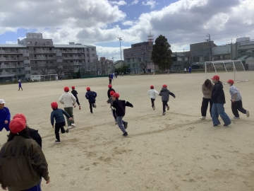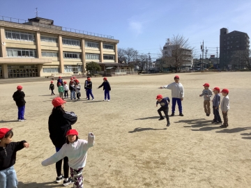 先月行った「6年生との遊び(4~6年)」とは少し違って、1~3年生との遊びは合奏を披露したり、一緒に大縄跳びをしたり、左手でドッチボールをしたりと、少し工夫を加えた